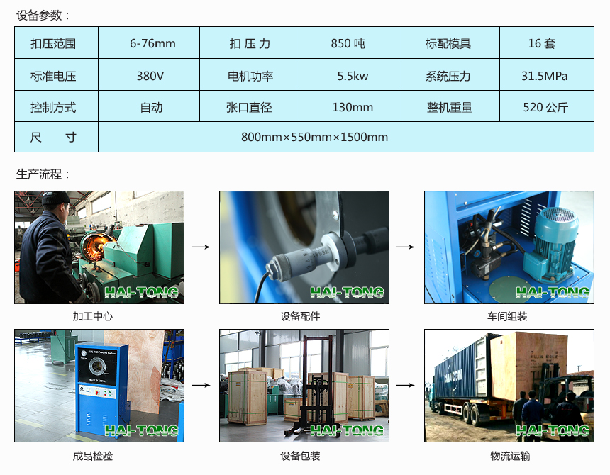 HT-76型扣壓機是我公司一款扣壓速度快,扣壓力大,張口直徑大,噪音低,性能穩定的產品。是我公司長銷不衰的產品。